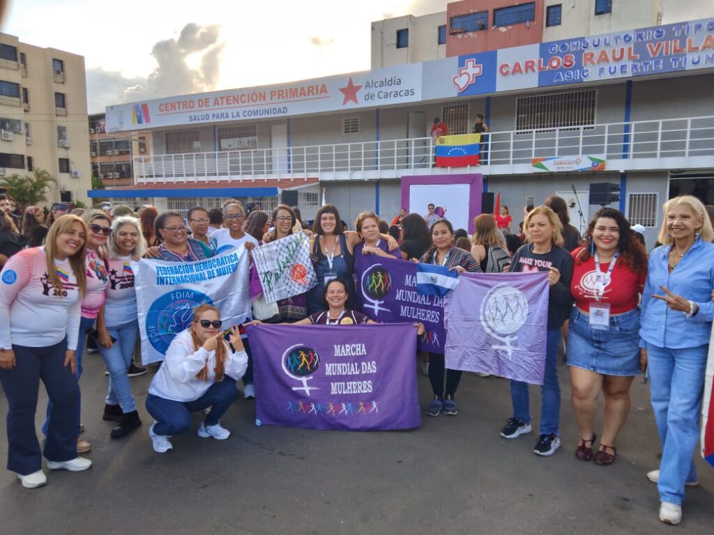 Cerca de 120 mulheres vindas de movimentos sociais, coletivos e partidos de esquerda de 22 países da América Latina e Europa participaram do primeiro encontro das Brigadas Internacionais das Mulheres Cilia Flores pela Paz, que aconteceu na Venezuela, entre 6 e 8 de março de 2026. A Marcha Mundial das Mulheres esteve presente com companheiras da Argentina, Brasil, Cuba e El Salvador, além da Venezuela.