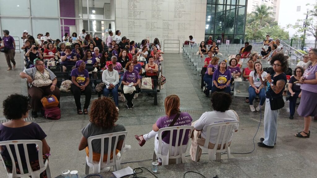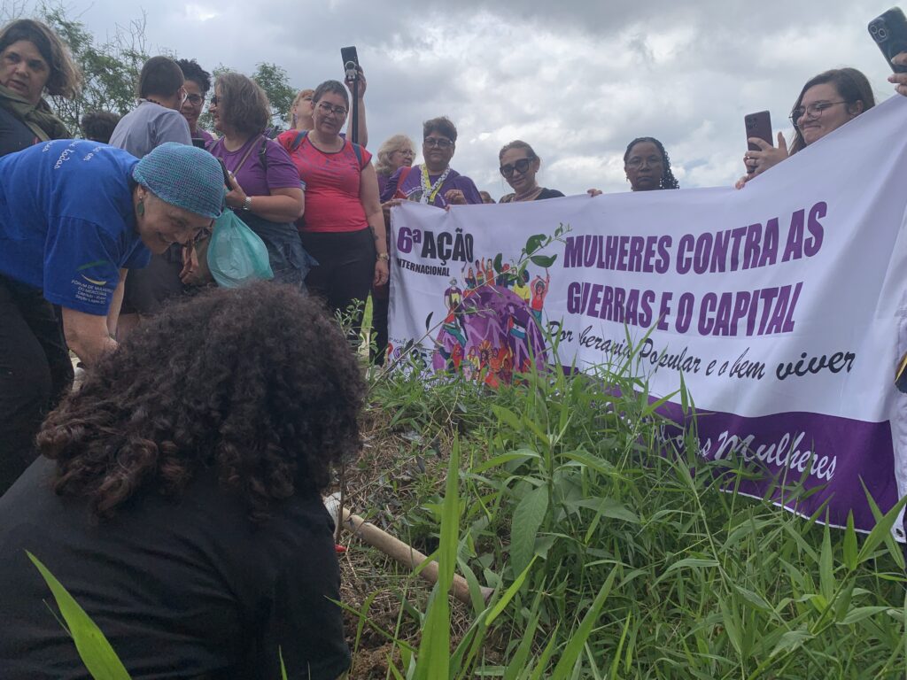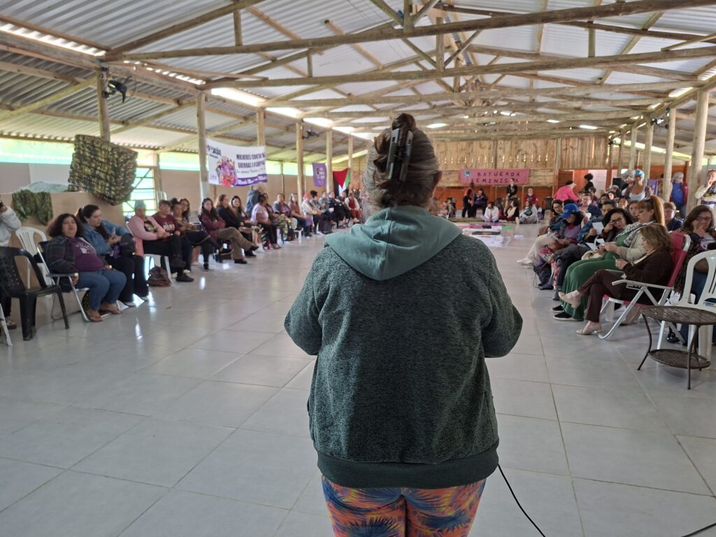 Um dos eixos centrais da atividade foi o debate sobre Paz e Desmilitarização. Na região, as mulheres enfrentam uma luta diária para combater a militarização nas escolas e garantir espaços seguros e livres de violência para nossas crianças e jovens, assim como nas aldeias indígenas, favelas, comunidades tradicionais, assentamentos e comunidades rurais.