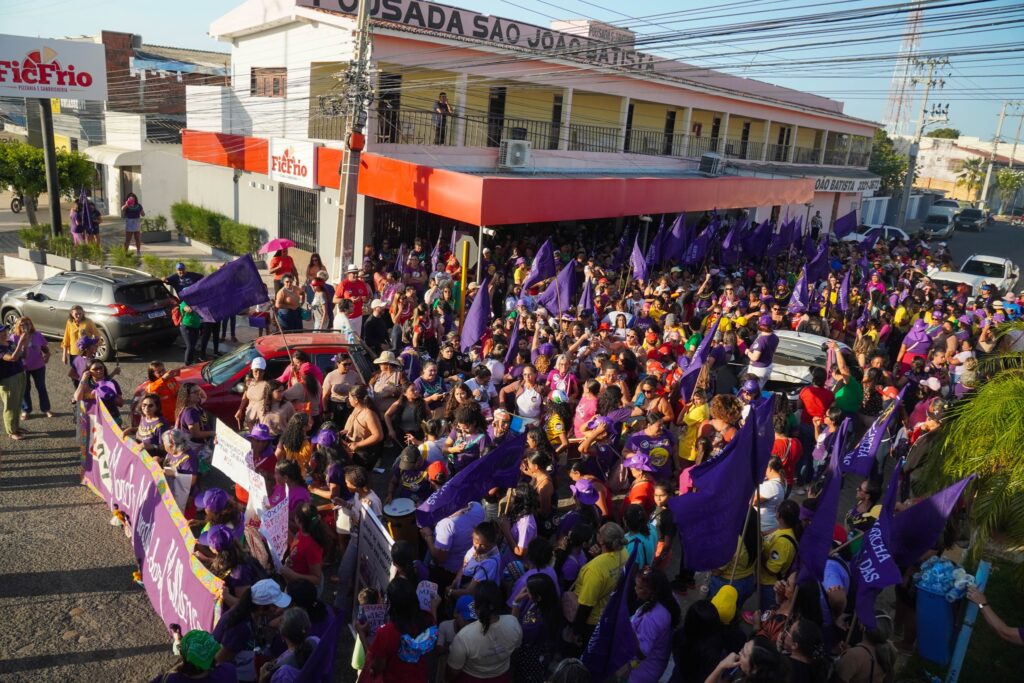 À tarde, as mais de mil mulheres tomaram a Avenida Presidente Dutra. Com a força e a irreverência da batucada feminista, a marcha transformou as ruas da cidade, afirmando que “os nossos corpos e territórios não são mercadorias”.