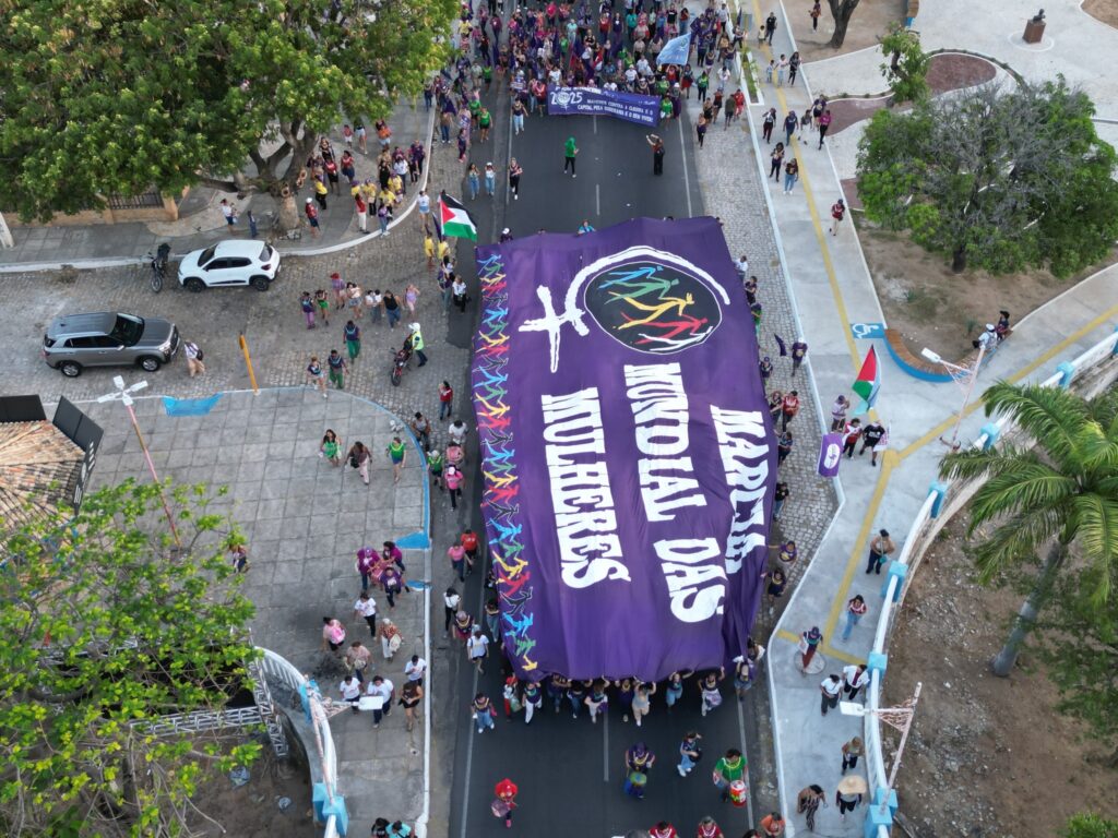 Alinhada ao lema da 6ª Ação, a solidariedade internacional foi um pilar do ato. As mulheres marcharam em defesa da soberania dos povos e pelo fim das guerras, ecoando a defesa da Palestina livre. A mobilização encerrou com um grande evento político-cultural, reafirmando o compromisso das mulheres da Marcha Mundial em lutar pelo Bem-Viver e por um mundo livre de opressões, violências e desigualdades. A mensagem final foi clara: “Seguiremos em marcha, até que todas sejamos livres!”.