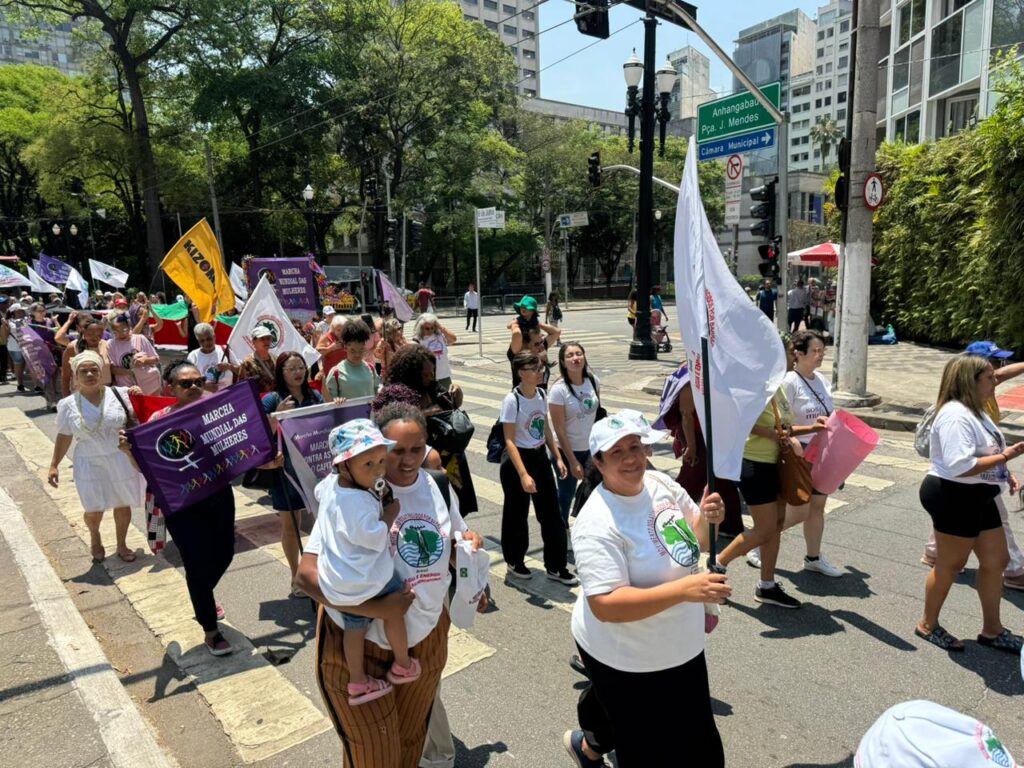 Entre os dias 17 e 19 de outubro a Marcha Mundial das Mulheres do Brasil realizou suas atividades regionais de encerramento da sua 6ª Ação Internacional em Mossoró (RN), São Paulo (SP) e Florianópolis (SC). A 6ª Ação de 2025 trouxe o lema: “Marchamos contra as guerras e o capitalismo, defendemos a soberania dos povos e o bem viver”.