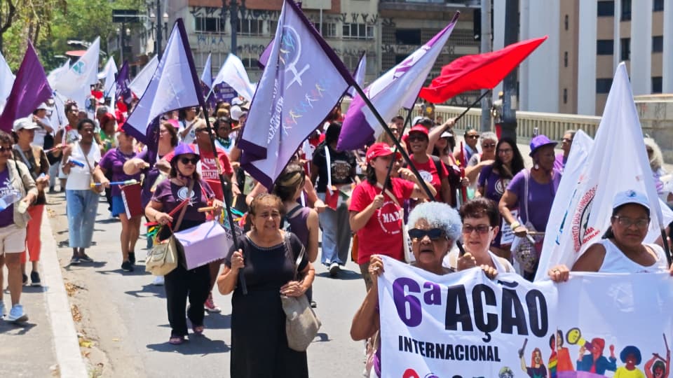 No Brasil a 6ª Ação se conectou com importantes processos de mobilização nacional: o Plebiscito Popular, contra a escala de trabalho 6×1 e taxação das grandes fortunas, a realização da 5ª Conferência Nacional de Políticas para as Mulheres, a 2ª Marcha Nacional das Mulheres Negras e Cúpula dos Povos na COP 30 de Belém que serão realizadas em novembro. Também seguimos de forma permanente nossa solidariedade feminista internacional às mulheres e povo Palestino, pelo fim do genocídio, já!