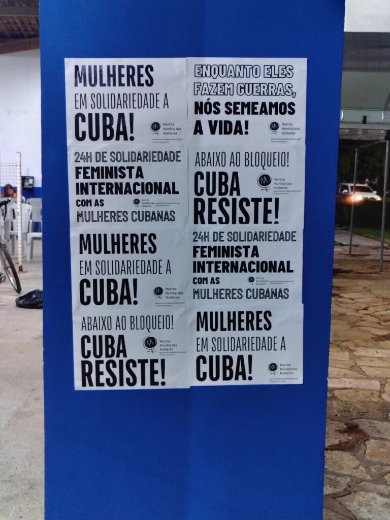 A MMM convocou os movimentos feministas, organizações aliadas de todas as regiões do mundo a se unirem em em solidariedade às mulheres cubanas e à sua resistência revolucionária. Há mais de 60 anos, Cuba resiste ao bloqueio dos EUA e à contínua agressão imperialista. Hoje, essas pressões continuam afetando a vida cotidiana, especialmente para as mulheres, que sustentam as comunidades e a resistência em condições cada vez mais difíceis.