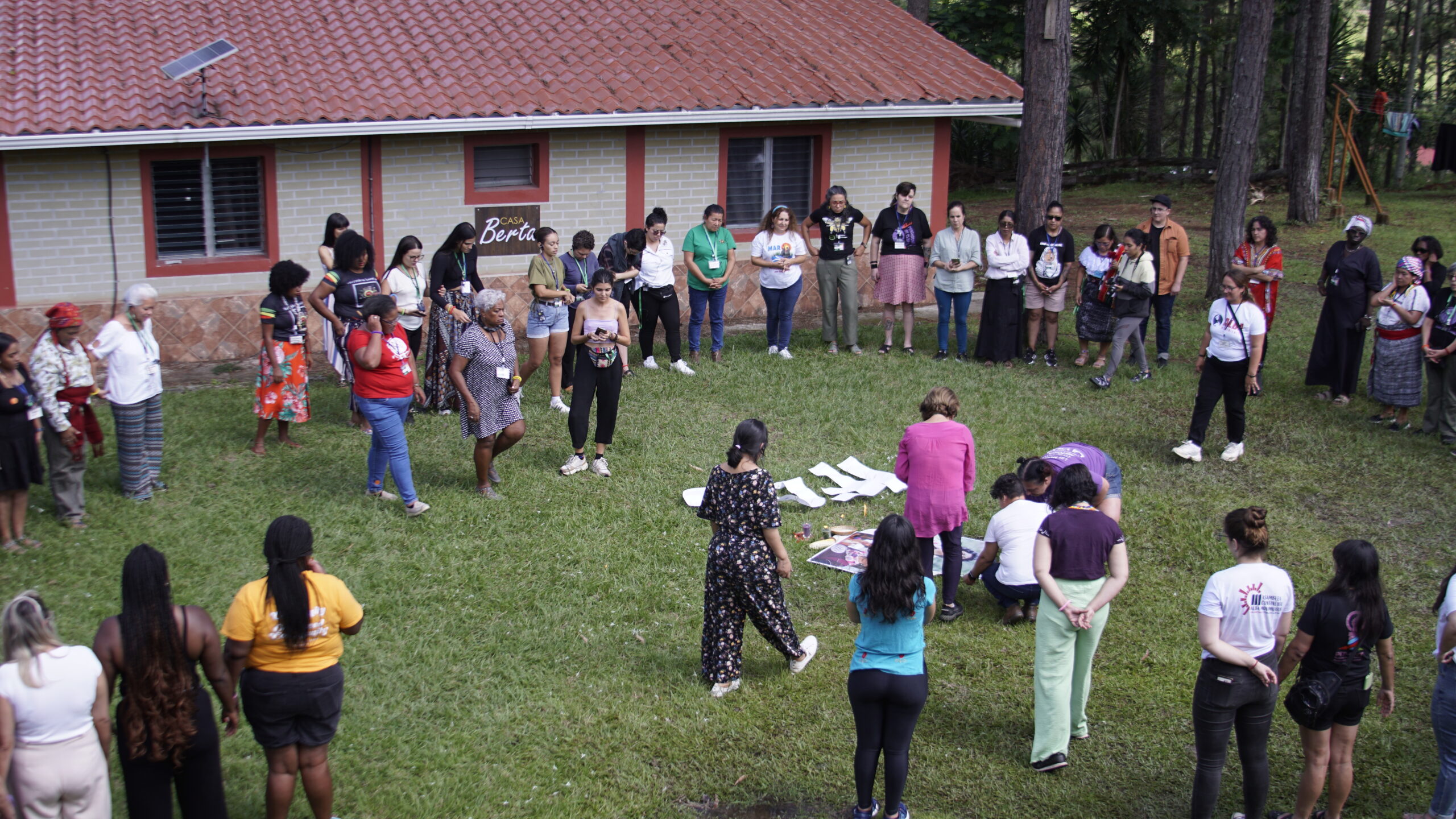 A escola iniciou com uma mística em homenagem a Berta Cáceres, militante feminista hondurenha, vítima da criminalização da luta, assassinada em 2016 e Nalu Faria, militante feminista brasileira que faleceu em 2023. Suas histórias são convocatórias para continuarmos em resistência e luta até que todas sejamos livres.