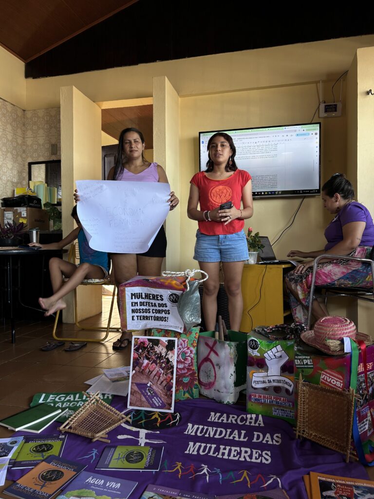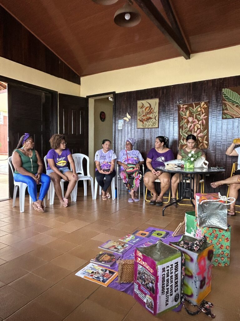 Durante os dois dias, as participantes se organizaram em grupos de debate sobre economia feminista, financeirização da natureza, políticas de cuidado e agroecologia. No grupo de economia feminista, as mulheres refletiram sobre como os princípios da economia feminista podem apoiar o debate sobre o trabalho das mulheres e sua reorganização.