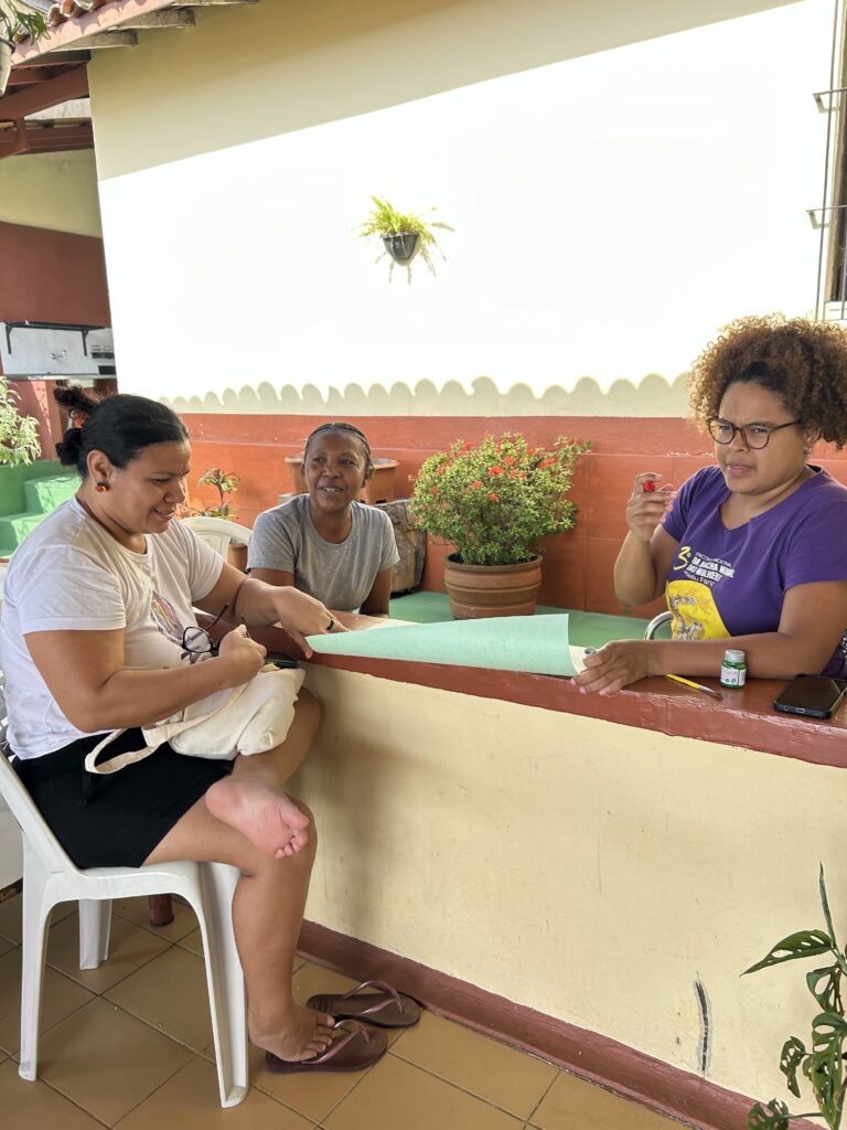Debateram como as empresas tentam maquiar ações e cooptar as mulheres com “boas práticas”, mas continuam explorando a natureza e a vida das comunidades. É preciso valorizar as mulheres catadoras, quebradeiras de côco e agricultoras, reconhecendo seus saberes como alternativas reais para a transformação da sociedade. Os desastres ambientais, frequentes na região, são agravados pela ação das transnacionais e recaem especialmente sobre as mulheres no cuidado familiar e comunitário. O capitalismo global e o agronegócio ameaçam diretamente os territórios, a saúde e a vida das mulheres. Reafirmamos o bem viver, a agroecologia, a ancestralidade e a solidariedade como caminhos para a justiça climática.
