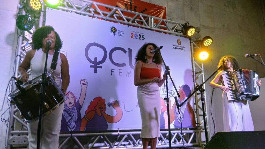 Nesta sexta-feira, 17 de outubro de 2025, o centro da cidade de São Paulo viveu o primeiro dia do festival Ocupa Feminista, organizado pela Marcha Mundial das Mulheres. A atividade faz parte do encerramento da 6ª Ação Internacional do movimento, iniciada em março, que impulsionou ações em diversas partes do mundo e do Brasil. O lema internacional da Ação é: “marchamos contra as guerras e o capitalismo, defendemos a soberania dos povos e o bem viver”.