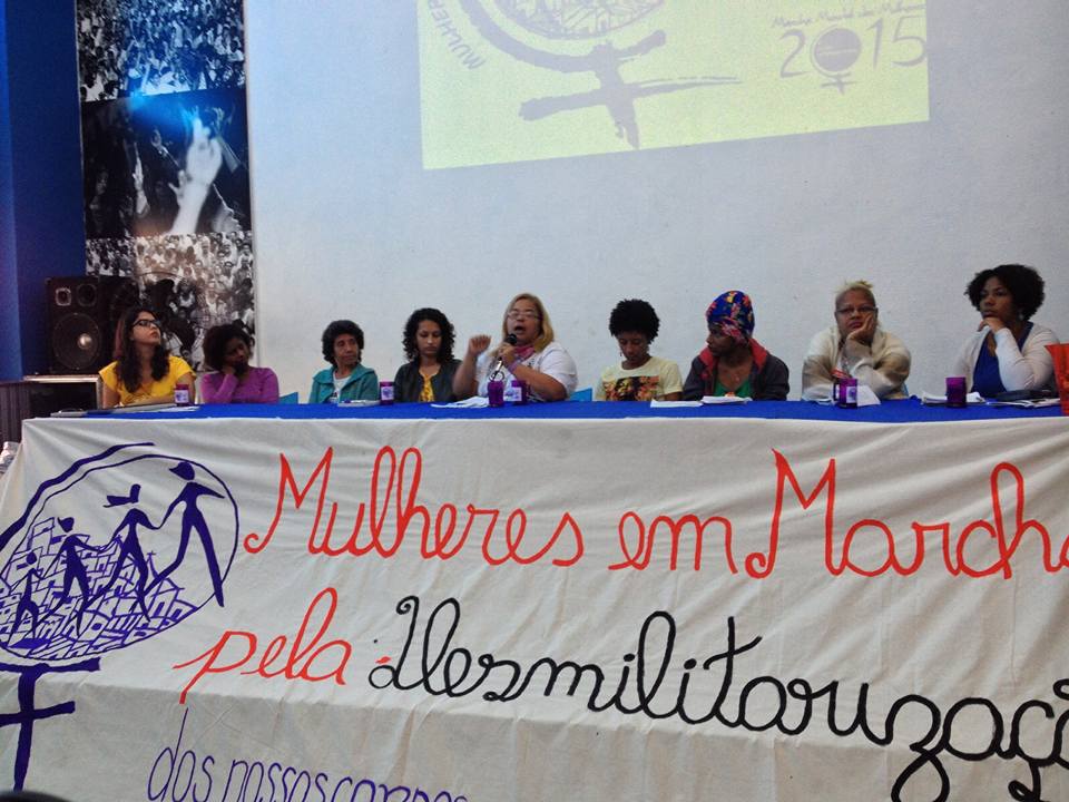 A mesa de abertura, intitulada “Mulheres e desmilitarização: uma luta feminista”, contou com a presença de militantes de diversas organizações e movimentos sociais que construíram a Ação junto com a Marcha. As militantes falaram da necessidade de as mulheres serem as protagonistas das resistências nestes territórios militarizados, e apresentaram suas alternativas feministas. “Somos uma minoria representativa nos espaços de tomada de poder e decisão. Querem se ver livre da gente, mas não vão conseguir. Estamos cada vez mais organizadas para ocupar estes espaços”, afirma Solange, moradora da comunidade de Heliópolis, em São Paulo. Ela ressaltou ainda a lógica das cidades voltada às demandas do mercado e o uso das forças do Estado para a repressão e a criminalização dos movimentos sociais.